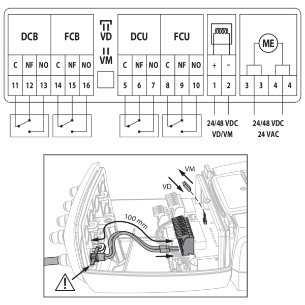 (option VD/VM MAN EVO FDCU) par émission (VD) ou interruption (VM) de courant vers la bobine.