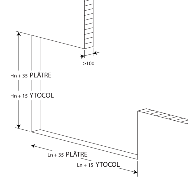 - Béton cellulaire / béton (armé) ≥ 100 mm | EI 120 (ve i o) | Plâtre / Ytocol | Type de pose : encastré, lamelles horizontales | 200x500 mm / 900x200 mm ≤ GE120-XL ≤ 1200x800 mm