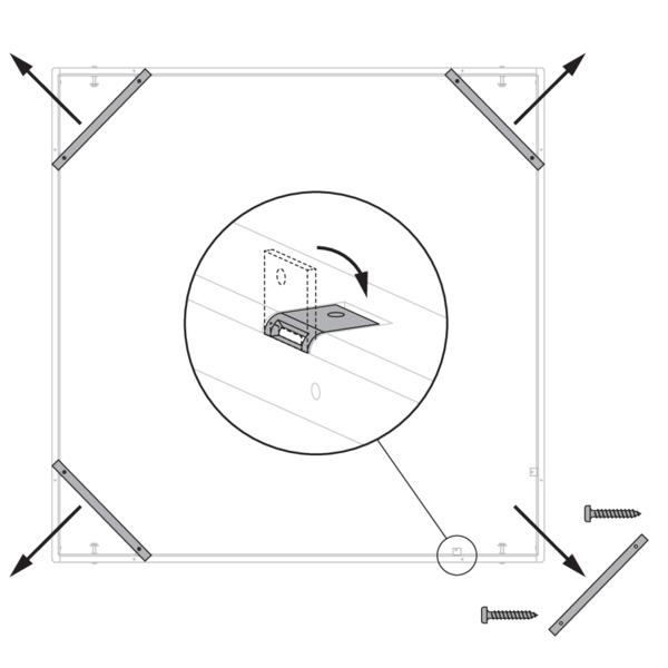 N'utilisez pas les 4 boulons du précadre, mais utilisez les 4 boulons fournis avec le volet (M6x50 mm).