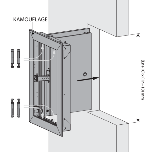 Faites une baie aux dimensions (L+20) x (H+20) mm jusqu'à (L+100) x (H+100) mm.
