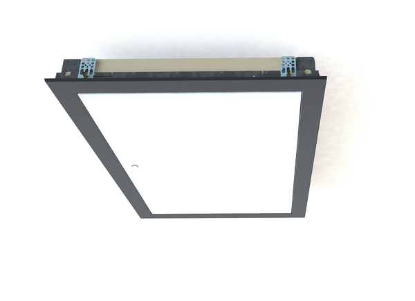 Volet de désenfumage à portillon esthétique pour pose horizontale.