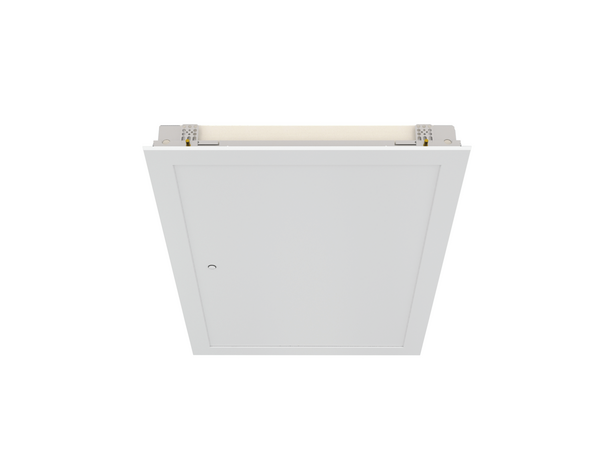 Cadre peint en blanc et vantail recouvert d'une plaque de finition métallique blanche (RAL 9010 mat)