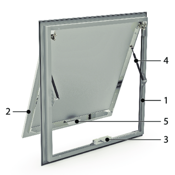 - Ouverture par ressort oléopneumatique du panneau et maintien de la position de sécurité.