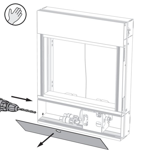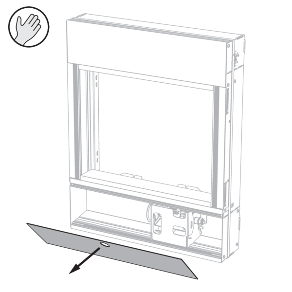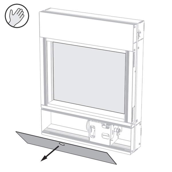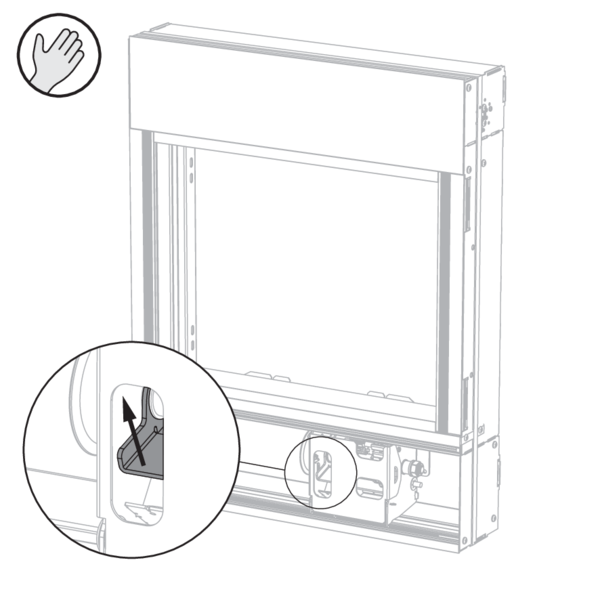 Ouvrez la trappe d’accès dans le profil inférieur du PASSAGE pour accéder au mécanisme manuel. Déposez la trappe d’accès sur le côté.