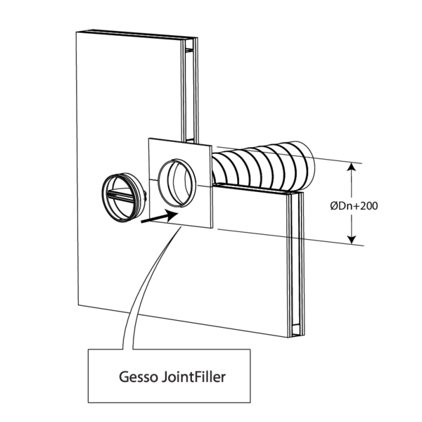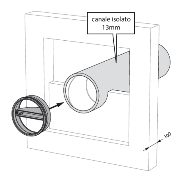 - Pannello di cartongesso con telaio metallico tipo A (EN 520) ≥ 100 mm | EI 60 (ve i o) S - (300Pa) | Canale isolato (ArmaFlex EVO, ArmaFlex Protect – fino a 13 mm) + lana di roccia + rivestimento ≥ 140 kg/m³ | Tipo di installazione: a incasso all'interno di un canale, 0-360° | SC+60 Ø 100-200 mm
