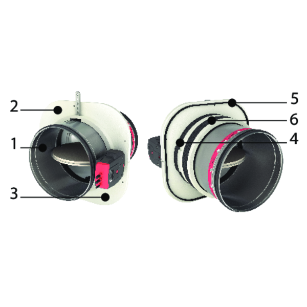 Serranda tagliafuoco circolare ottimizzata con una resistenza al fuoco fino a 120 minuti, disponibile nella versione per piccoli diametri (a partire da 100 mm). Assicura una perdita di carico minima grazie alla pala sottile, al fusibile termico allineato alla pala e all'azionamento ubicato esternamente all'involucro.