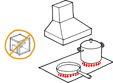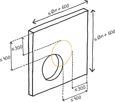 De brandklep moet niet centraal in de opening geplaatst worden (de maximale afstand tussen brandklep en rand is 400 mm).