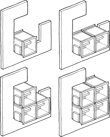 De vier hoeken van de standaardkaders van rechthoekige kleppen zijn voorzien van sleufgaten voor bevestiging aan luchtkanalen door middel van bouten. De kaders zijn ook voorbereid voor het gebruik van schuiflatten of klemmen.