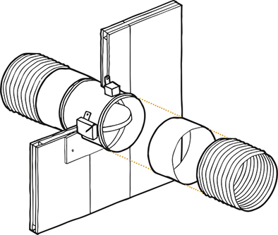 Vierkante kleppen kunnen door middel van een speciaal aanpassingsstuk aangesloten worden op ronde kanalen.