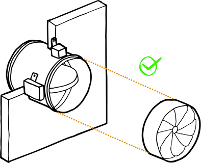 Dit is echter een letterlijke interpretatie van de wettekst. In elk geval primeert de functionaliteit van de brandwerende oplossing in het ventilatiesysteem. Aangezien er op een SC+ geen extern mechanisme aanwezig is, moet een controle mogelijk blijven en moet het smeltlood toegankelijk blijven. Artikel 6.7.4.3. van de aangegeven bijlagen voorziet trouwens dat er een gemakkelijk bereikbaar inspectieluik moet geplaatst worden op de klepkast of op de koker in de onmiddellijke nabijheid van de klep. Daarom worden vlinderkleppen gebruikelijk op het einde van een kanaal geplaatst (in een muur of een plafond waar een kanaal eindigt). Rf-t raadt aan om in andere situaties een ronde brandklep (type CR60 en CR120) te plaatsen. Deze brandkleppen bieden bovendien 2 keer minder drukverlies voor dezelfde diameters.