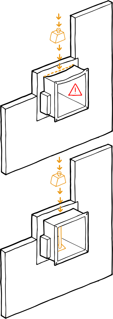Bij rechthoekige kleppen met een grote afmeting is door de vlakke vorm de bovenzijde minder goed bestand tegen belasting. Het gewicht van een afdichting met mortel of gips kan de tunnel blijvend vervormen. Hierdoor bestaat het risico dat het klepblad niet of onvoldoende kan sluiten. Het wordt daarom aangeraden om in dergelijke gevallen de tunnel extra te ondersteunen gedurende het drogen en uitharden van de afdichting.