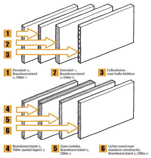 - Dat de brandweerstand en dikte van de wand gelijk of hoger zijn dan die van de geteste lichte wand en