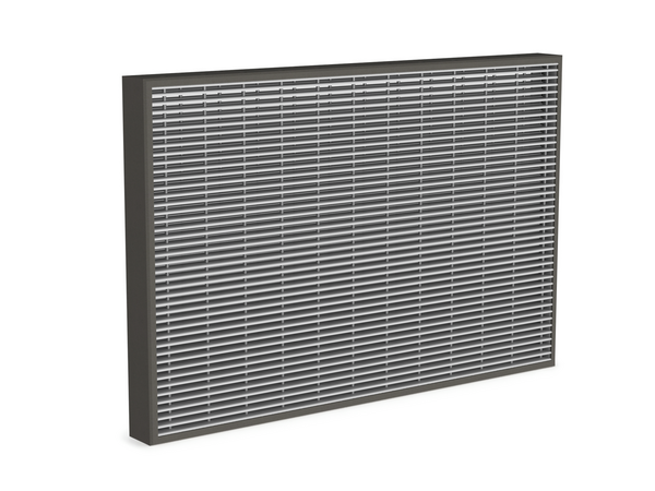 Rechthoekig doorkijkrooster met een brandweerstand tot 120 minuten in massieve wand, verkrijgbaar in grote afmetingen tot 1200x800 mm.