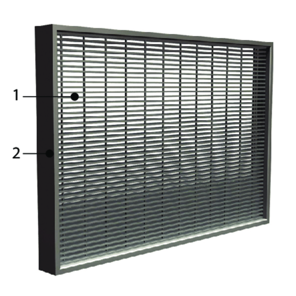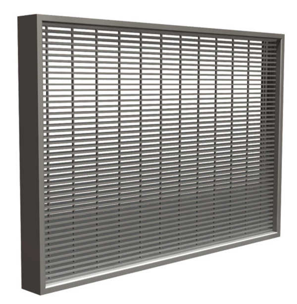 Groot doorkijkrooster met een brandweerstand tot 60 minuten in massieve wand. Een versterkte HDF kader zorgt voor de nodige stevigheid, zelfs voor de grootste afmetingen.