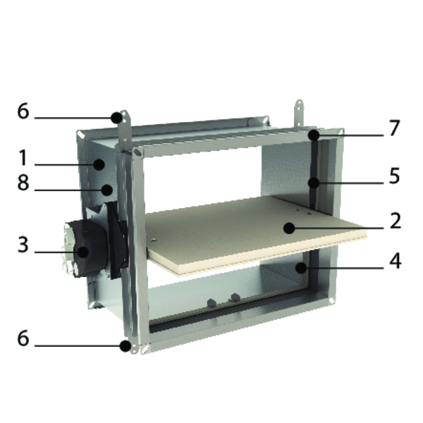 Geoptimaliseerde rechthoekige brandklep met een brandweerstand tot 120 minuten en beschikbaar in kleine afmetingen (hoogte vanaf 100 mm). Een minimaal drukverlies wordt gegarandeerd door het dunne klepblad en de overbrenging die zich buiten de tunnel bevindt.
