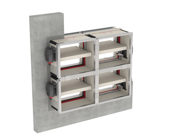 De batterijklep CU2/B-L500 is een samenstelling van meerdere CU2-L500 kleppen met een maximum van 4 deelkleppen (B12, B21 of B22). Dankzij deze variante steekt het klepblad aan de muurzijde tot een hoogte van 500 mm niet meer uit.