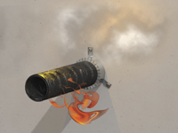 - De leiding brandt weg en het opzwellende materiaal vult de gecreëerde opening om de voortplanting van brand te verhinderen.