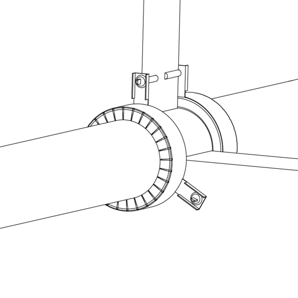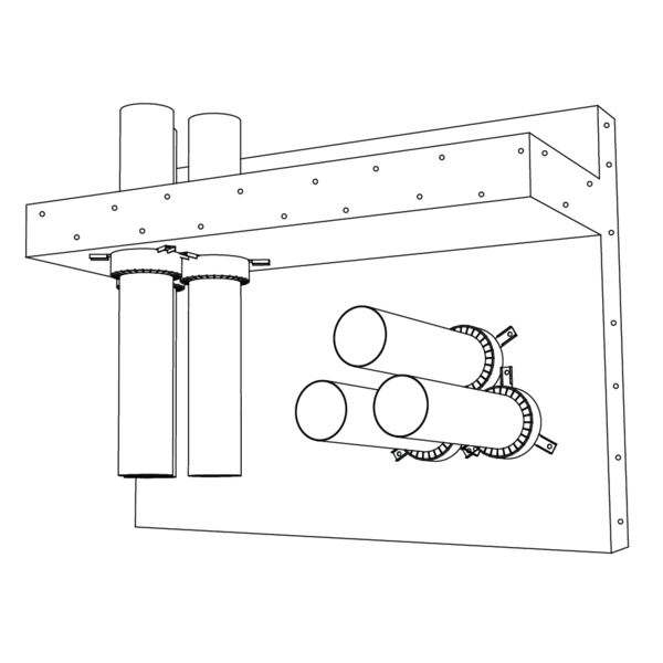 Plaats de opbouwmanchetten aan beide zijden rond de leidingen en bevestig deze met draadstangen, rondellen en moeren (M6).
