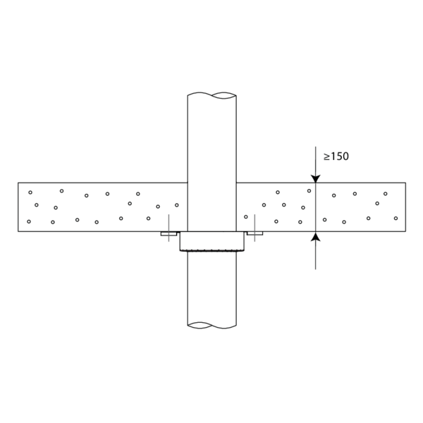 Eén manchet aan de onderzijde van de vloer volstaat voor doorvoeringen doorheen een massieve vloer.
