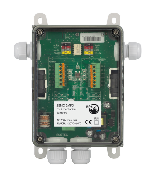 De ZENiX 2MFD veldmodule wordt gebruikt om tot 2 mechanische (smeltlood) kleppen te monitoren. Er is geen configuratie nodig, omdat het een vooraf gedefinieerd adres heeft.