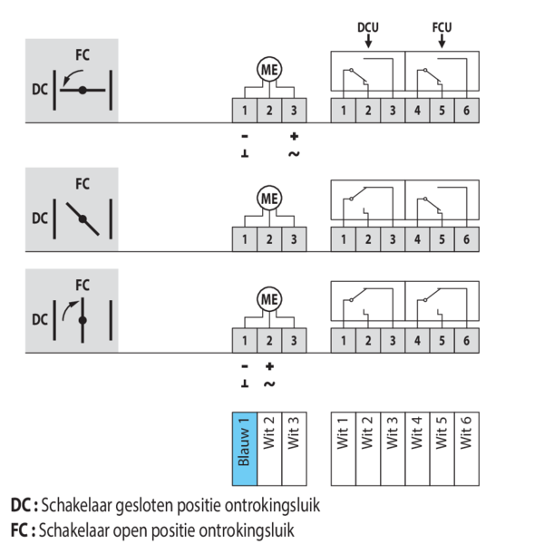 voedingsspanning op kabels 1 en 2 aanbrengen.