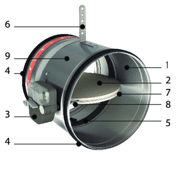 Geoptimaliseerde ronde brandklep met een brandweerstand van minimum 60 minuten en beschikbaar in kleine diameters (vanaf 100 mm). Een minimaal drukverlies wordt gegarandeerd door het dunne klepblad, het smeltlood in het verlengde van het klepblad en de overbrenging die zich buiten de tunnel bevindt.
