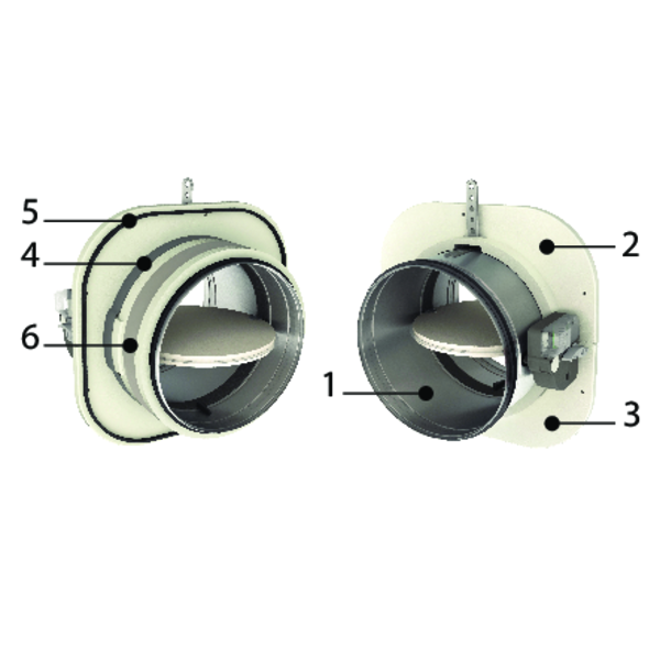 Ronde opbouw brandklep met een brandweerstand van minimum 60 minuten.