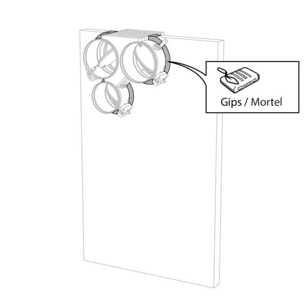 Plaatsing in flexibele schachtwand, afdichting met gips