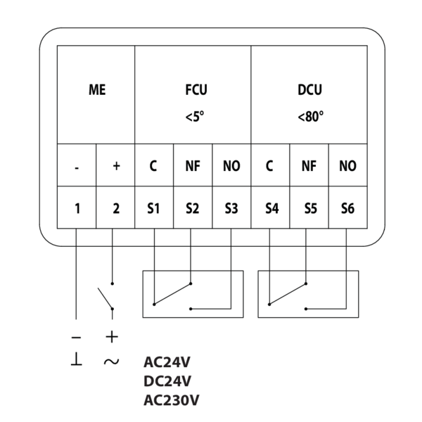 schakel de voedingsspanning minstens 10 sec. uit. Voed de servomotor (respecteer de aangegeven spanning) min. 75 sec. De beweging van de motor stopt automatisch bij het bereiken van de eindeloop (klep open) - het duurt ongeveer 60 sec. om de klep te wapenen - of bij het onderbreken van de voeding.