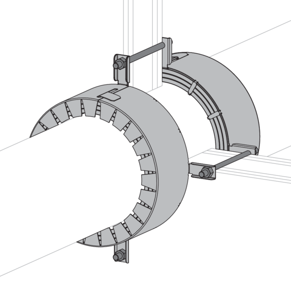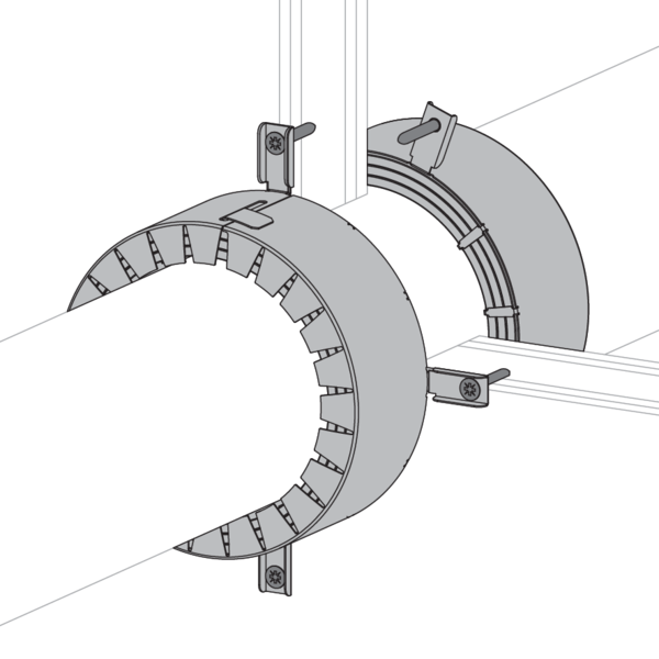 • Ondersteuning van de leiding is noodzakelijk om een functionele werking van de afdichting te garanderen in geval van brand. De leidingen moeten ondersteund en bevestigd worden volgens de regels van goed vakmanschap. Hiervoor verwijzen we naar de voorschriften van de fabrikant van de leidingen.