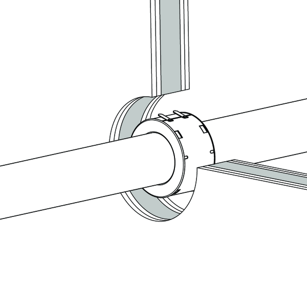 Plaats de inbouwmanchetten rond de leidingen door het etiket te verwijderen en vervolgens de manchet te bevestigen door de lipjes om te plooien. Positioneer de manchet centraal in de wanddikte.