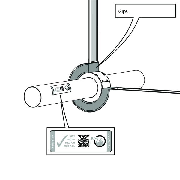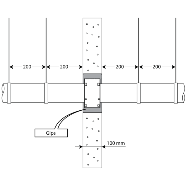 - Ondersteuning van de leiding is noodzakelijk om een functionele werking van de afdichting te garanderen in geval van brand. De leidingen moeten ondersteund en bevestigd worden volgens de regels van goed vakmanschap. Hiervoor verwijzen we naar de voorschriften van de fabrikant van de leidingen.