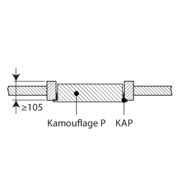 - Exthamat ≥ 30 mm | EI 90 (hod i o) S 1500 AA multi | Kamouflage 120 P | Installatiemethode: in kanaal/op schacht gemonteerd 0/90°/180°/270° | 350x385 mm ≤ Kamouflage P 1V ≤ 700x775 mm; 550x1075 mm