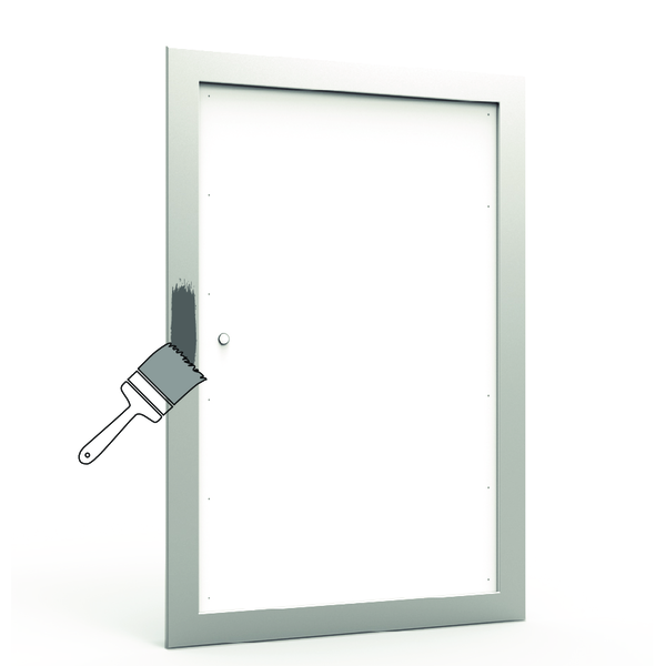Voorbereiding: De deur bestaat uit een gipsplaat: vul de schroefgaten op met een geschikte vulpasta, laat drogen en schuur de oppervlakte, gebruik vervolgens een geschikte primer. Behandel het kader uit geanodiseerd aluminium eveneens met een geschikte primer.