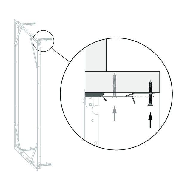 Twee bevestigingsplaatjes zijn voorzien aan de onder- en bovenzijde van het inbouwkader: plooi deze tegen de kraag. Bevestig de EASY-KAP aan de kraag met spaanplaatschroeven Ø 6 x e mm. Gebruik een van de daarvoor bestemde openingen, afhankelijk van de diepte van de kraag.