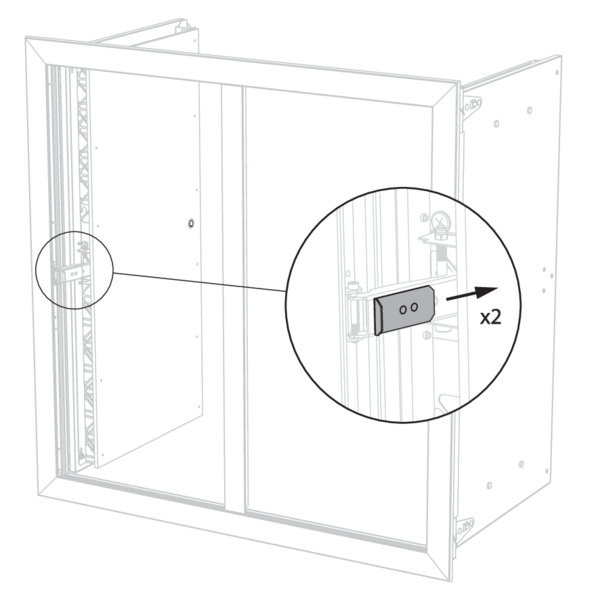 Twee bevestigingsplaatjes zijn voorzien aan de onder- en bovenzijde van het inbouwkader: plooi deze tegen het kanaal. Voorzie de opening van lijm GLASROC F V500 en lijm het inbouwkader vast in de opening. Zorg ervoor dat het inbouwkader hierbij niet vervormt.