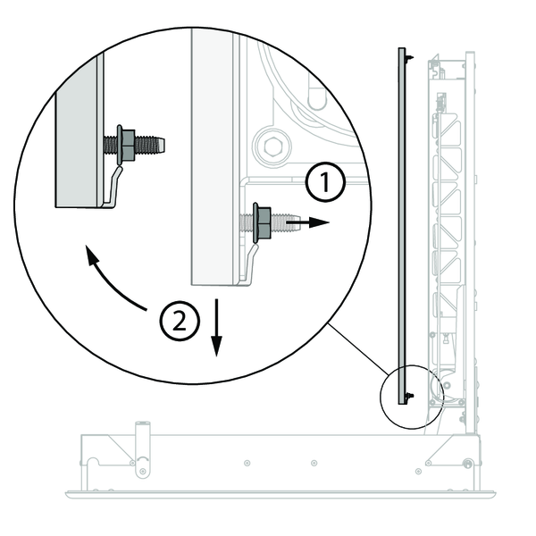 Verdraai de vier vastzettingsplaatjes op het luik 90° naar de opstaande stand.