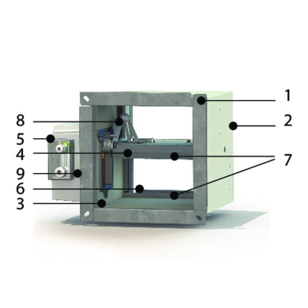 Rechthoekige rookbeheersingsklep met een hoge luchtdichtheid en een brandweerstand tot 120 minuten.
