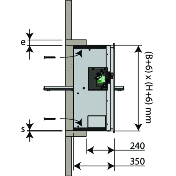 Maak een opening met afmeting (B+80) x (H+80) mm (indien afdichting met een mengsel van plaaster en sisal vezel) of een opening met afmeting (B+6) x (H+6) mm (indien afdichting met lijm en schroeven).