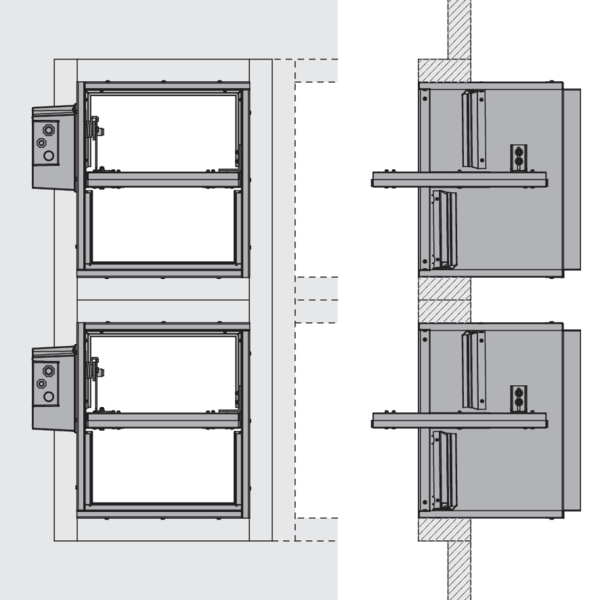 Als meerdere rookbeheersingskleppen op minimale tussenafstand gemonteerd worden, dan moeten de draag- en versterkingspunten van het kanaal worden aangepast in verhouding tot het toegenomen gewicht. De plaatsing van het kanaal dient steeds te gebeuren conform het classificatierapport van de kanaalfabrikant.
