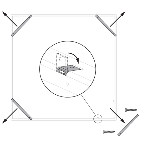 Vrid de fyra fästplattorna på spjället 90° (till upprätt läge).