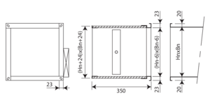 PG20 - Anslutning till kanaler med 20 mm flänsar, med elliptiska hål Ø 6,5 x 16 mm. Även möjlig på schaktsidan istället för PS-anslutning (vid beställningen).
