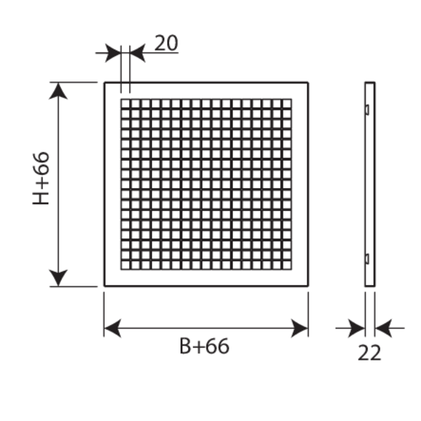 PPT (+PG3V) - Galler som passar som skyddsgaller i slutet av en ventilationskanal. Den förlängda ramen PG3V ingår då spjällbladet är större än höljet. Kan användas på mekanismsidan istället för PG30-anslutning (vid beställningen).