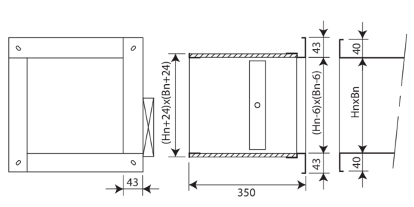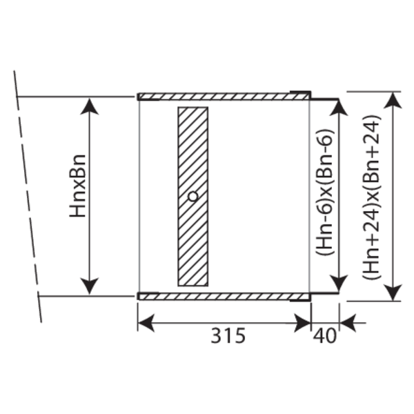 PG40 - Anslutning till kanaler med 40 mm flänsar, med elliptiska hål Ø 8,5 x 16 mm. Även möjlig på schaktsidan istället för PS- eller PG30-anslutning (vid beställningen).