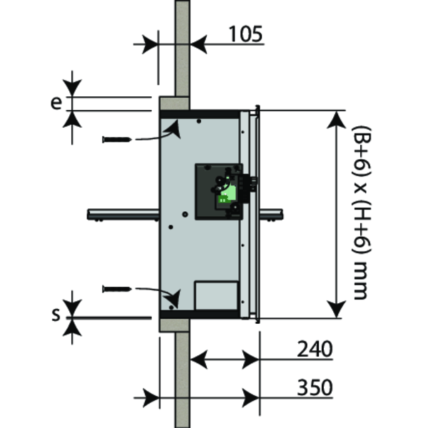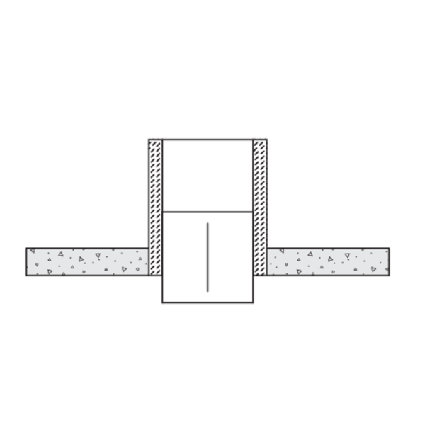 Gör en öppning med måtten (B + A) x (H + A) mm. A = 2 x tjocklek kanaldel (e) + 6 mm.