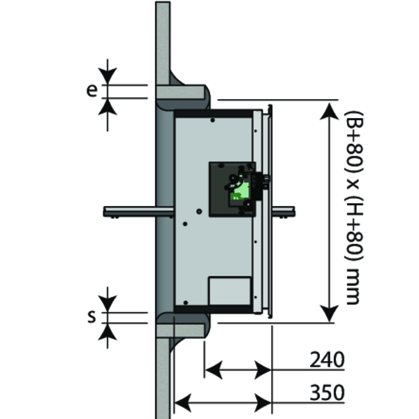 Gör en öppning med måtten (B+80) x (H+80) mm (vid tätning med en blandning av gips och sisalfiber) eller en öppning med måtten (B+6) x (H+6) mm (vid tätning med lim och skruvar).